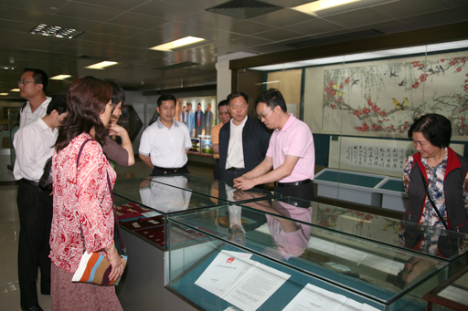 (图为珠海市档案局一行在成洪生局长的陪同下参观市档案馆馆藏珍品展)