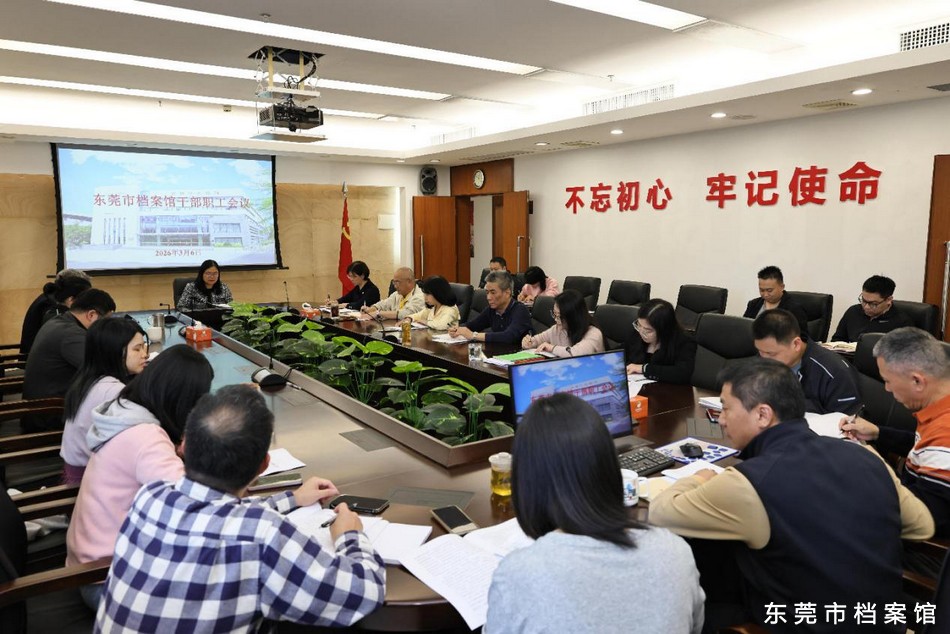 36日,东莞市档案馆召开全馆工作会议,传达学习全省高质量发展大会精神以及全市“投资强基实干兴莞”动员部署大会、全市“资本赋能服务强企”动员部署大会精神,总结2025年工作情况,部署2026年工作任务。市档案馆馆长翟婥莹主持会议,全体干部职工参加会议。
