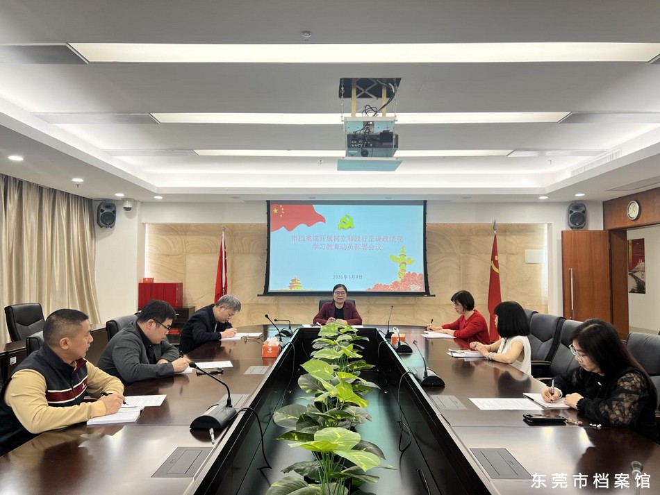 会议强调,开展树立和践行正确政绩观学习教育,是总书记、党中央着眼党和国家事业发展全局作出的重要部署,对于推动“十五五”开好局、起好步,为以中国式现代化全面推进强国建设、民族复兴伟业提供有力保障,具有重大而深远的意义。我们要切实增强抓好学习教育的政治自觉、思想自觉、行动自觉,全面贯彻党中央决策部署,深刻理解、准确把握、全面落实“立党为公、为民造福、科学决策、真抓实干”的总要求,努力做到为人民出政绩、以实干出政绩,确保学习教育落到实处、取得实效。要深化理论学习,筑牢思想根基。把学习习近平总书记关于树立和践行正确政绩观的重要论述作为重要政治任务,教育引导全馆党员干部牢牢树立起正确政绩观,进一步明确档案工作的政绩导向,深刻认识到档案工作的“潜功”就是“显功”,“基础工作”就是“重点工作”,以理论清醒保证政绩观端正。要坚持开门教育,深入查摆问题。对照上级要求和档案工作职能职责,通过自查自纠、调查研究、听取群众意见等途径,深入查找政绩观方面存在的问题。领导班子要带头查摆,建立问题清单,明确整改措施、责任人和完成时限,做到即知即改、立行立改、真改实改。要紧扣主责主业,转化学习成效。以开展学习教育为契机,聚焦落实档案工作“存史资政育人”使命任务和省委“1310”具体部署,以及建设“智创优品、和美宜居”现代化新东莞的要求,把学习教育与档案工作主责主业深度融合,科学编制我馆“十五五”规划和认真落实年度重点工作,以学习教育推动工作提质,以工作实绩检验学习成效。要强化组织保障,压实工作责任。馆领导班子履行主体责任,班子成员落实“一岗双责”,办公室负责日常工作,确保各项任务顺利推进。要注重统筹兼顾,把学习教育与年度重点工作、队伍建设、作风建设结合起来,把正确政绩观融入日常工作、抓在经常,推动学习教育成果常态化、长效化。
