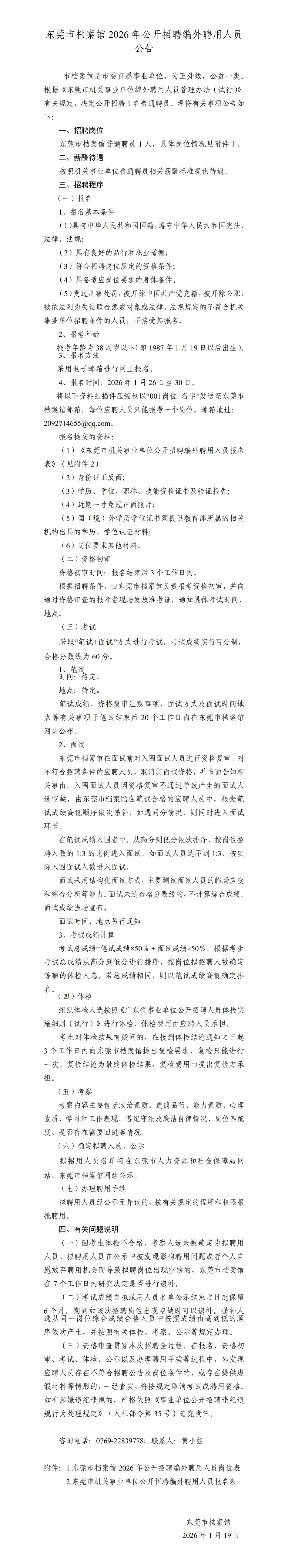 附件1.东莞市档案馆2026年公开招聘编外聘用人员岗位表